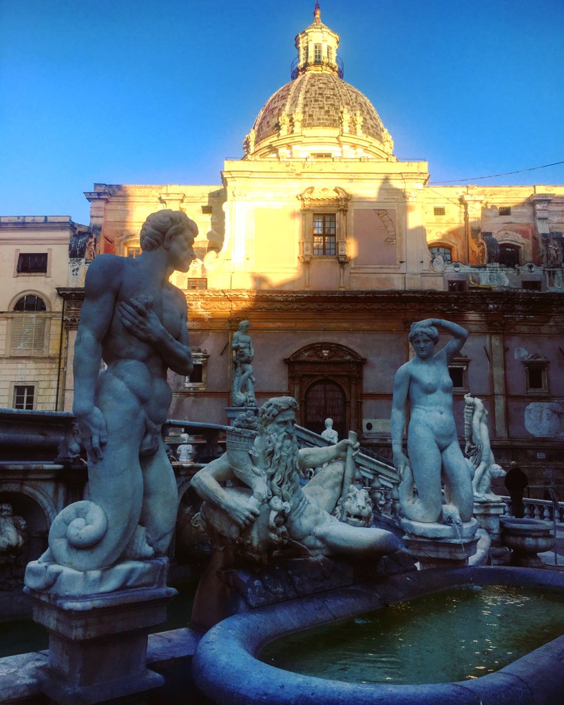In questa città ho amato perdermi, perdermi da sola. Confesso di non aver mai avuto paura. Ho passeggiato al “Mercato ‘u Capu”, alla Vucciria, lungo la Cala, sulle mura delle Cattive, a Villa Giulia e Via Roma. Mi sono inebriata di meraviglia quando sono arrivata per la prima volta in quella che per me è la piazza più bella della città: Piazza Pretoria. Si trova accanto ai Quattro Canti, uno slarghetto nel quale s’intersecano due delle vie principali della città: Via Maqueda e Via Vittorio Emanuele.