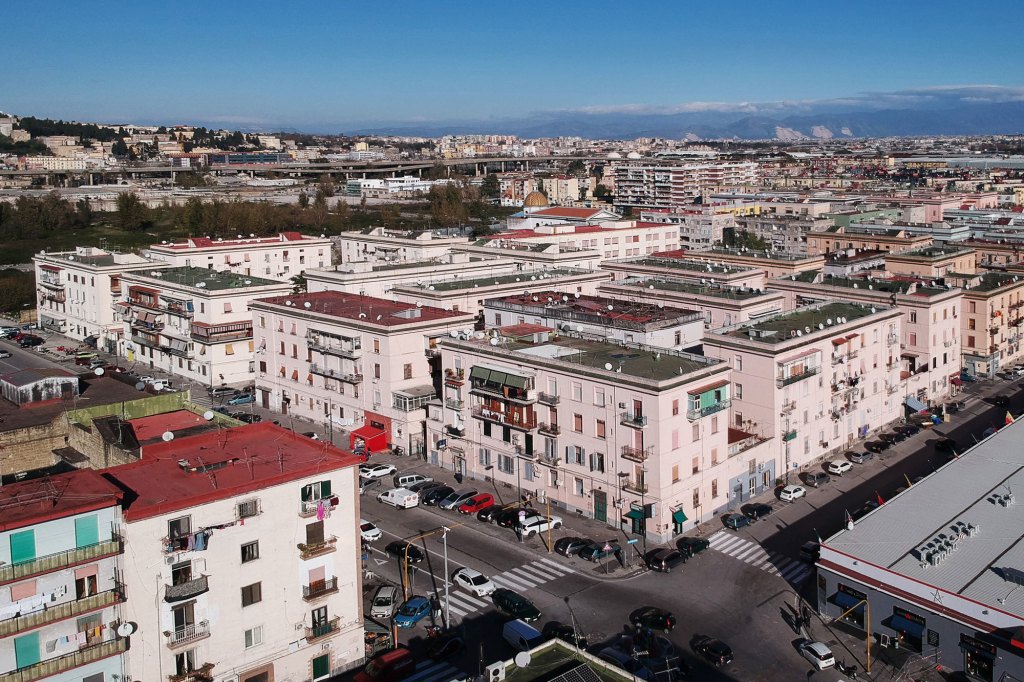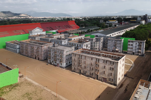 La risposta vi sorprenderà: siamo stati costretti a uscire da Napoli, città dove non abbiamo trovato un’area così grande da soddisfare pienamente le nostre esigenze. Essendo il set di ventimila metri quadrati, siamo riusciti nell’intento a Caserta, nella zona industriale. Non è questione di scelte o vantaggi, è un’operazione d’obbligo quella di ricreare gli ambienti degli anni del racconto fuori dalla città. A Napoli i quartieri anni ‘50 non sono più com’erano un tempo naturalmente. Il racconto è ambientato nel rione Luzzati ma nel set siamo sempre a Caserta. Ovviamente il risultato è un compromesso. Abbiamo mostrato una stratificazione. Nella realtà non sarebbe stato possibile ricostruirlo tale e quale. La scena è stata quindi ricreata più o meno similare a quella del tempo ma, con il trascorrere degli anni nell’ambito del racconto, abbiamo poi provveduto a creare mano a mano anche le sovrastrutture.