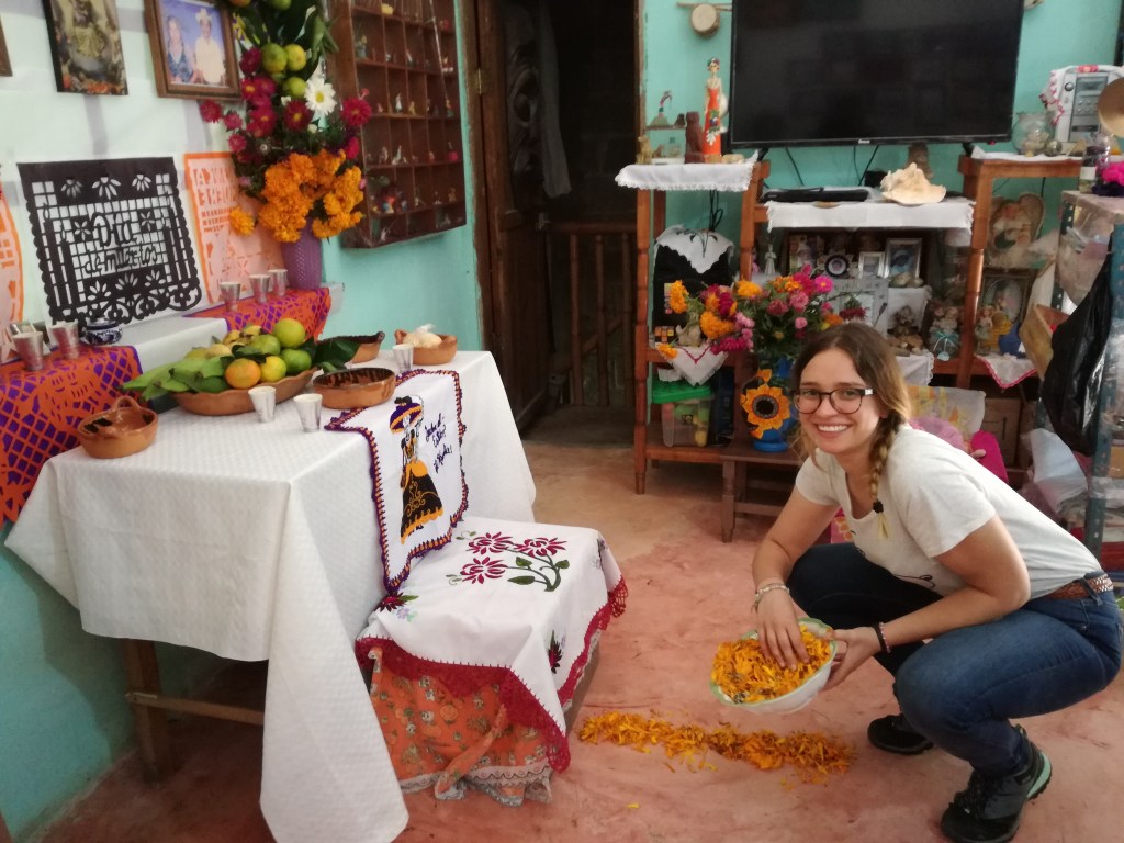 Se qualcuno mi dovesse chiedere qual è la prima cosa che mi viene in mente pensando al Día de Muertos messicano, risponderei senza dubbio Cempoalxochitl (“fiore venti” in náhuatl). L’immagine dei tipici fiori (Tagetes Erecta), che si utilizzano per adornare gli altari e per accompagnare i propri cari defunti dal Mictlan al mondo dei vivi, è prominente ed inebria la mia mente avvolgendo qualsiasi altro ricordo legato a questa festività, tingendolo di arancione.