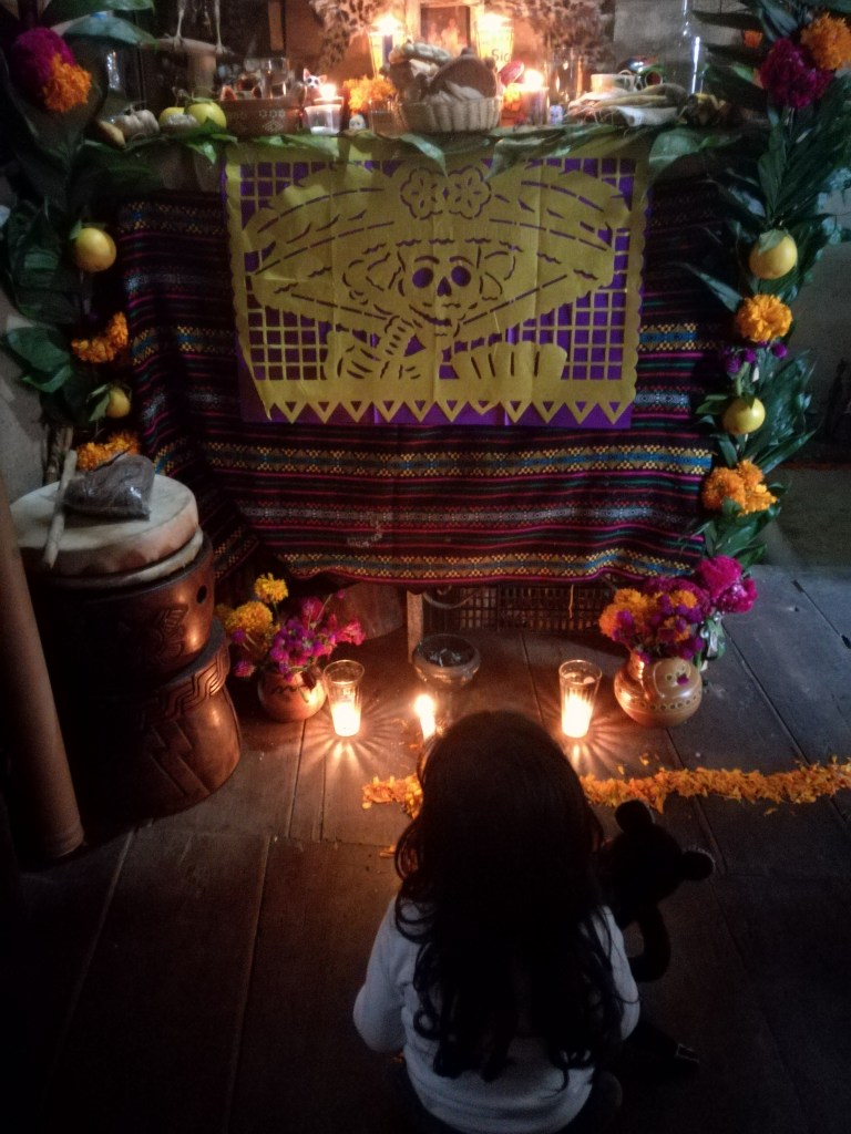 Secondo la cosmovisione degli indigeni nahua della Sierra Norte di Puebla, frutto di un sincretismo religioso fra le antiche credenze Mexica (coloro che i nostri libri di storia chiamano Atzechi) e il cattolicesimo qui importato dagli Spagnoli dopo la conquista a partire dal XVI secolo, i morti continuano a giocare un ruolo importante nella vita dei vivi pur essendo defunti, quello fondamentale di mediazione con la divinità. Qui i concetti di una separazione netta tra bene e male di cristiana memoria sfumano per lasciare spazio ad una ciclicità perpetua delle cose, in cui vi è un continuo spostamento di energia cosmica che permette di mantenere un certo equilibrio vitale. Così, proprio fra ottobre e novembre, nel periodo della raccolta di mais e di altri alimenti indispensabili per la sussistenza di queste comunità, si rende necessario ingraziarsi i propri morti saziando la loro fame, per far sì che intercedano con la Santissima Trinità affinché permetta loro di avere un buon raccolto l’anno successivo[1].