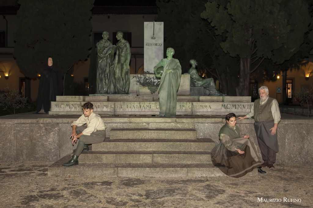 Il pubblico delle Seggiole, però, è abituato a dialogare con uomini importanti, sia per la storia di Firenze sia per quella mondiale, come Giorgio Vasari, il primo personaggio incontrato all’interno di quel corridoio che porta il suo nome e che dà il nome anche allo spettacolo. Camminando sulle “teste dei Fiorentini”, come i Medici erano soliti fare per spostarsi da una parte all’altra della città, da Palazzo Vecchio a Palazzo Pitti, gli spettatori passeggiano anche nella storia. Infatti, dalla concitazione di un partigiano ardente di liberare la sua Firenze, il pubblico ascolta anche le parole del nemico, un tedesco, il quale racconta che, la notte del 4 agosto 1944, mentre i ponti di tutta la città saltavano per rendere più difficoltosa l’avanzata degli alleati, l’unico ponte che venne risparmiato fu proprio il Ponte Vecchio sul quale passa il corridoio. E se i fiorentini hanno pazientemente ricostruito la città, l’Elettrice Palatina, l’ultima discendente dei Medici e il penultimo personaggio prima di Bianca Cappello, qualche secolo prima è riuscita a mantenere intatto il suo patrimonio artistico, collezionato nel tempo dalla famiglia.
