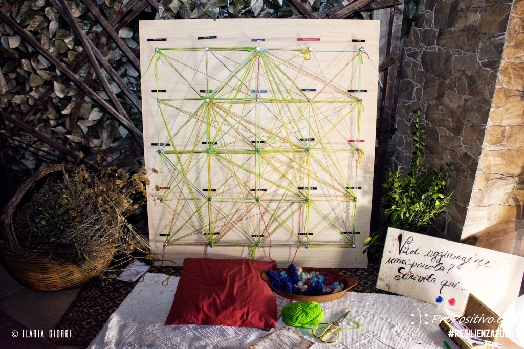 Al termine della residenza infatti, il collettivo ha creato un’installazione partecipativa site-specific che aveva precisamente il fine di unire la storia del territorio a quella della comunità, a cui veniva rivolta una domanda precisa: «Perché vivi ancora qui?». Sul pannello erano posizionati dei pioli e ad ognuno di questi corrispondeva una possibile risposta alla domanda: famiglia, lavoro, terra ma anche paura o “perché non ho scelta”. A quel punto, una volta individuata le parole più adatte a sé, ognuno doveva legare con il filo il punto a cui corrispondevano. I diversi colori dei fili sono stati divisi in base alla fascia di età dei partecipanti. Il risultato è stato sorprendente: ha dato vita ad una vera e propria mappatura statistica artigianale, una trama, come quella delle nasse e del filet di Bosa. In questo intreccio di fili c’è la storia di una comunità.
