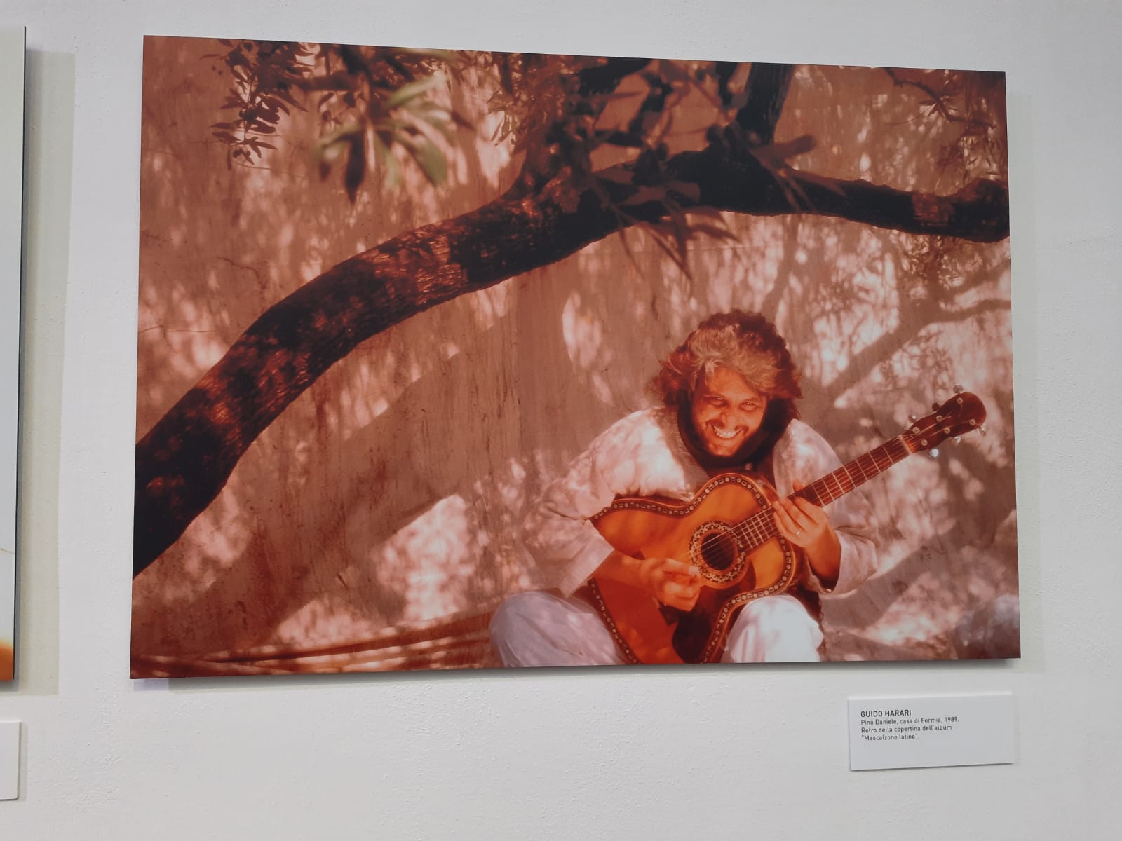 La mostra, visitabile fino al 31 dicembre, presenta per la prima volta stampe in grande formato di meravigliose fotografie che ritraggono il mascalzone latino durante tutta la sua carriera: dagli anni ’70 ai primi 2000. Gli autori degli scatti sono diversi fotografi-amici che hanno testimoniato con professionalità e sensibilità non solo le performance che Pino ha donato ai suoi fan, ma soprattutto il Pino del backstage, dei periodi di lavoro silenziosi, passati magari in qualche isola del Mediterraneo con la mente sempre rivolta alla sua Napoli. Parliamo di artisti del calibro di Guido Harari ‒ curatore della mostra insieme ad Alessandro Daniele, figlio di Pino ‒ Giovanni Canitano, Adolfo Franzò, Mimmo Jodice, Cesare Monti, Roberto Panucci, Letizia Pepori, Lino Vairetti e Luciano Viti.
