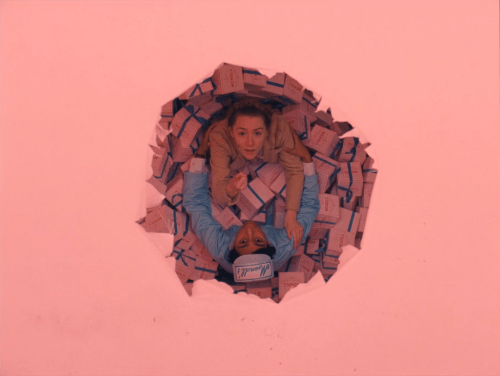 Un esempio è dato dall’uso intensificato della camera fissa, frontalissima, che cattura i personaggi mentre sono letteralmente in posa (con effetto da tableaux vivants), o si muovono secondo precise coreografie che suggeriscono un uso teatrale dello spazio. Un altro è dato dalla voce acusmatica dei narratori – extra e intradiegetici – che, classificandole, assumono pieno potere sulle immagini: quando la voce di Tilda Swinton racconta il tour promozionale del dipinto di Rosenthaler, si assiste a una sequenza di carrellate a singhiozzo in cui la macchina da presa cataloga gli spazi in una giocosa esibizione del “trucco” scenico (come già accadeva tra le cabine della Belafonte di Zissou), con un totale congelamento dell’azione. La “casa di bambole” assume dunque un’architettura sempre più articolata, radiografata dallo sguardo entomologico del regista. Anderson non rinuncia poi a spezzare il live action con sequenze di pura animazione, già ampiamente esplorata in Fantastic Mr. Fox e L’isola dei cani (proprio l’animazione gli permette, secondo Ilaria Feole, di attuare un «controllo totale su ogni aspetto dell’universo che sta fabbricando»); il regista, infine, moltiplica i riferimenti metatestuali al mondo della grafica, del fumetto e dell’illustrazione, producendo una cartoonesca stilizzazione delle immagini.